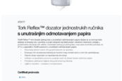 Tork® Reflex™ mini dozator s unutrašnjim odmotavanjem papira štedi prostor i idealan je za brisanje ruku i površina u profesionalnim okruženjima svih veličina. Doziranjem jednog lista po list, smanjuje potrošnju do 37% u usporedbi s Tork® sustavom s unutrašnjim odmotavanjem papira.