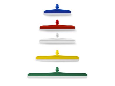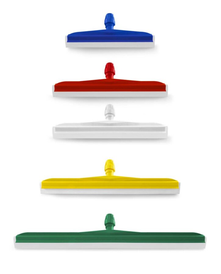 Plastični brisač za pod, s bijelom gumenom oštricom i nosačem u boji. Za korištenje u bilo kojoj vrsti poda za sušenje ili uklanjanje viška vode.