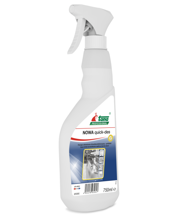 NOWA quick-des je brzo djelujuće dezinfekcijsko sredstvo za površine s baktericidnim, levurocidnim i ograničeno virucidnim djelovanjem. Testirano prema VAH smjernicama, bez klora, aldehida i fenola.