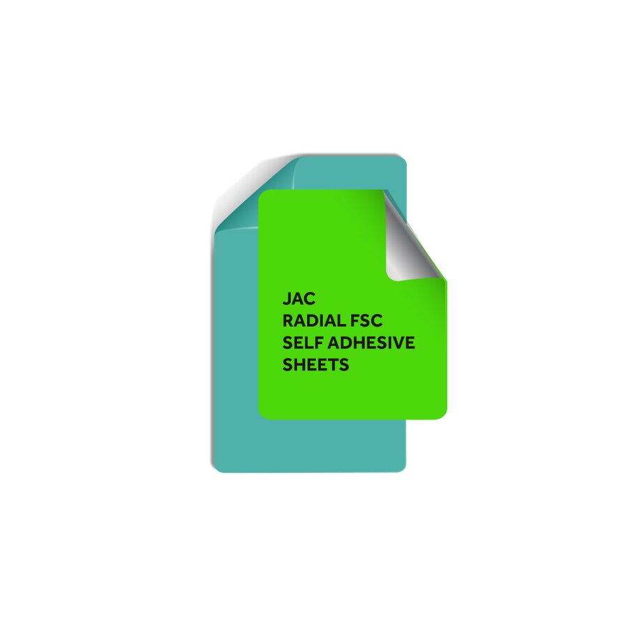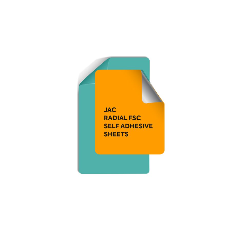 JAC Radial je serija samoljepljivih papira presvučenih s jedne strane fluorescentnim bojama, žuta,zelena,narančasta i crvena. Ovi papiri karakteriziraju vrlo visoku fluorescenciju na dnevnom svjetlu i koriste se za izradu privlačnih naljepnica i naljepnica, kao što su upozorenja, reklamne naljepnice itd. Format B2 50x70.